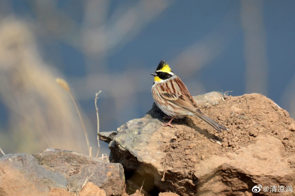 金字塔状的羽冠加上黄色眉纹及喉部,使其不易被误认。成年雄鸟胸部具黑色斑块,颊黑色,羽冠黑色,喉部及眉纹黄色。雌鸟与雄鸟相似但体色较淡,胸部缺少黑色斑块。雌雄两性都具有褐色的背部,白色的腹部,两胁有少量纵纹。常集成小群,于公园、森林和草地觅食。 eBird