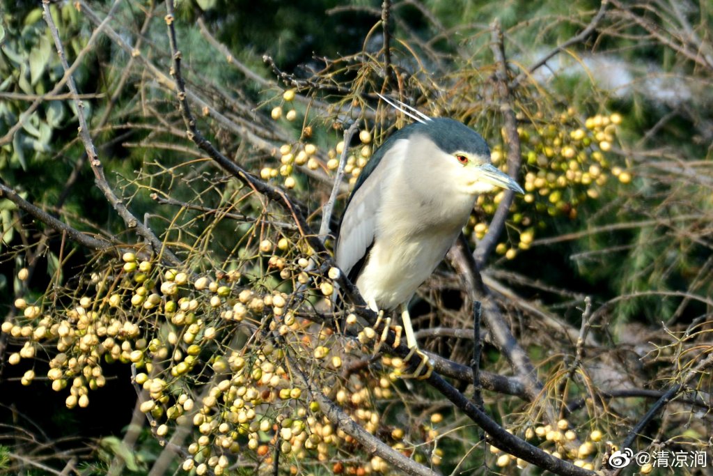 体态敦实的鹭类,颈部常向内缩起。成鸟整体淡灰色,头顶和背部黑色,虹膜红色。幼鸟羽色明显不同,整体褐色,布满斑点,虹膜黄色。白天常蹲伏于悬垂的树枝下,夜间捕食鱼类、青蛙和其他猎物。幼鸟与绿鹭幼鸟的区别在于其褐色翅膀上的白斑更大、更明显。 eBird