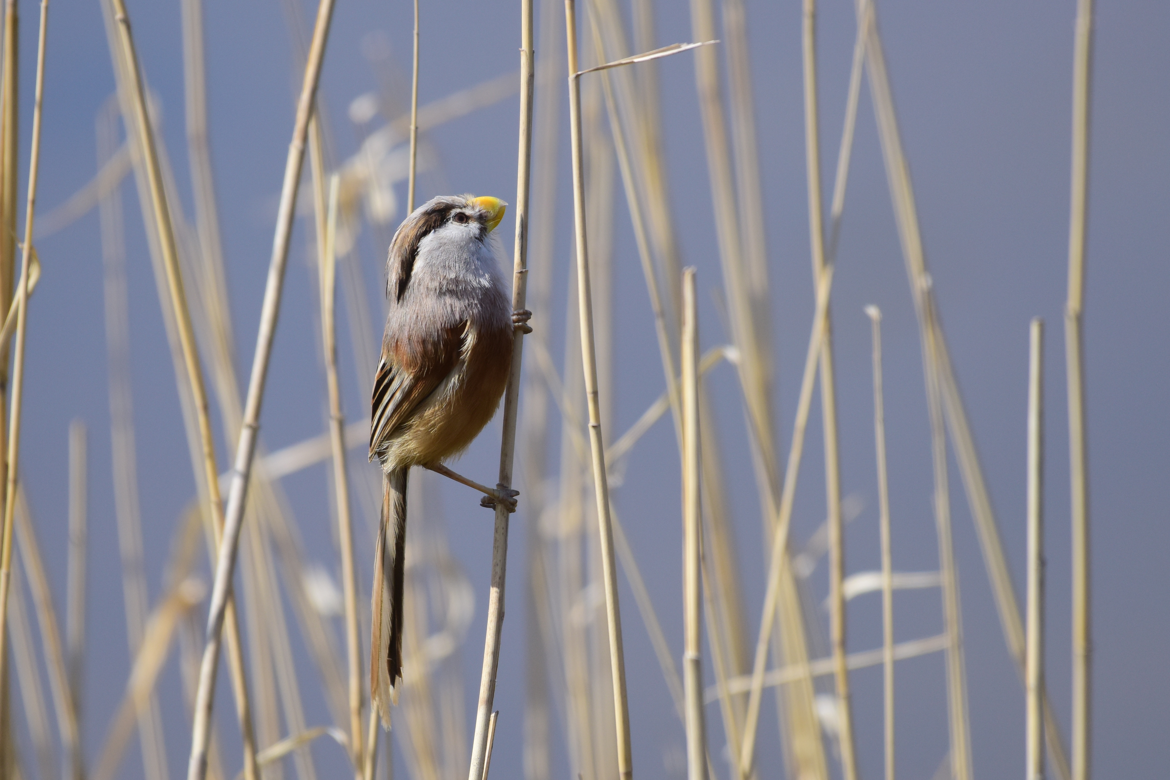 偏好茂密的芦苇植物及大片湿地,这种像有娃娃脸的鸟头部灰色,具漂亮的黑色眉纹,体羽暖棕色。既拥有鸦雀科典型的长尾和粗壮的喙,本种还显得格外瘦高,不像其大部分都圆胖丰腴的近亲。常在以小到中群在植被中活动时从芦苇丛的遮掩下发出嘶哑刺耳的哨音及颤音。