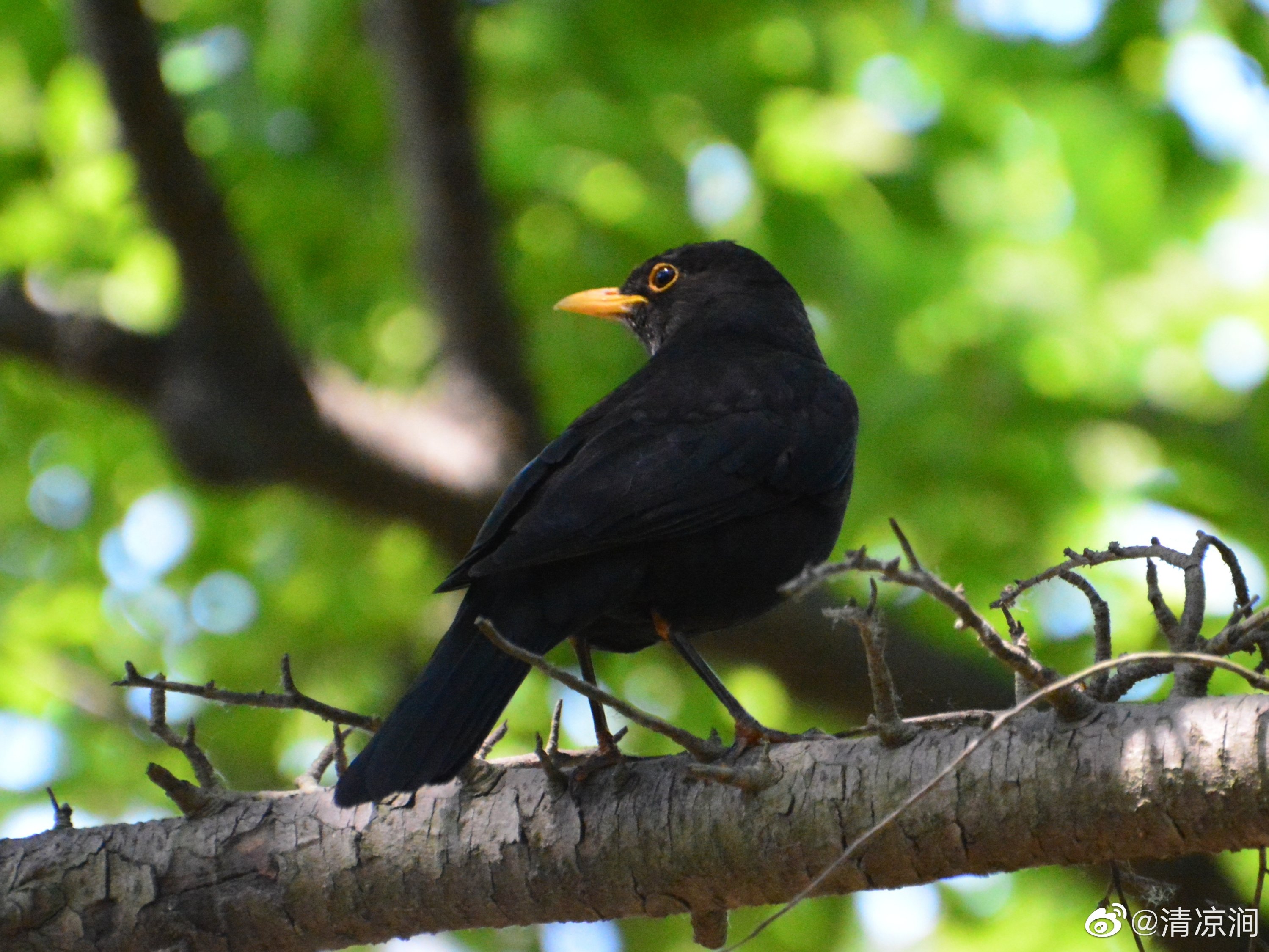 黑色的大型鸫类,常活动于开阔森林、庭院和农场;在其广泛的分布范围内是一种极为常见的城市鸟类。常见于远离遮蔽物的草坪和田地,捕食蚯蚓和其他无脊椎动物。雌雄两性羽色都近黑,喙黄色;雄鸟全身黑色,雌鸟则为深褐色。全天都会于暴露的栖枝上优美地鸣唱;鸣唱声为一连串嘹亮的音节,个体间可能会存在较大差异。警戒或受到惊吓时,常发出刺耳的尖叫或一连串“wuk”声。 eBird