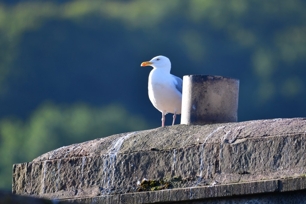 码头边有不少水鸟,主要有加拿大黑雁和灰雁。天空中有银鸥和小黑背鸥。草地上到处都是寒鸦。