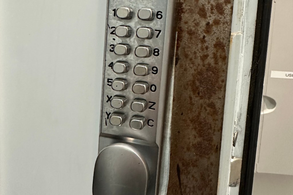 英国民宿的机械按键密码锁是一种通过按压数字按键来输入密码从而实现开锁功能的锁具,操作简单、无需电力。输入密码后,扭开下方的旋钮,推开房门就进入这个小小的Studio。