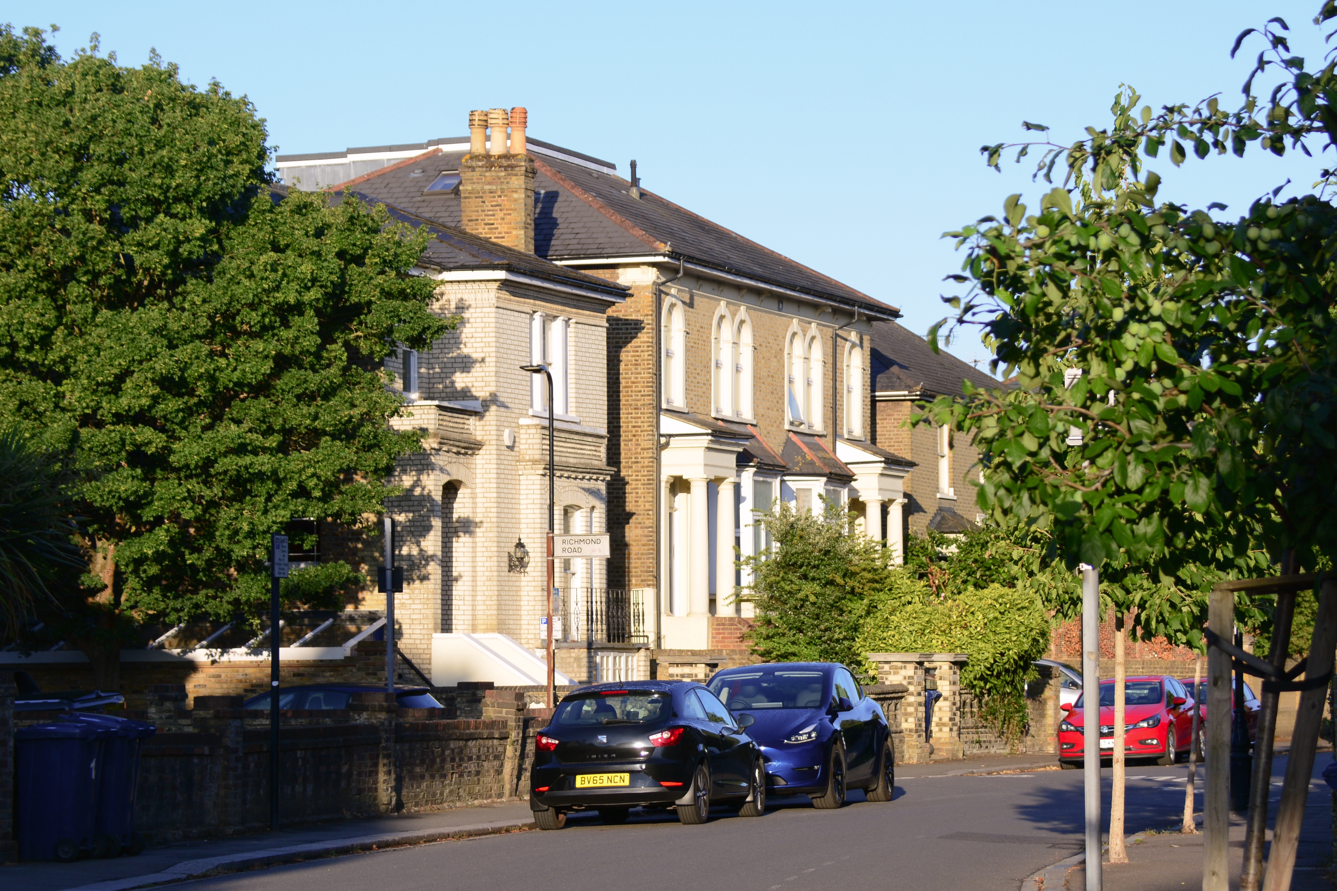 我们出门左转,进入Windsor Road,一路向南走到Warwick Road,然后向东走到Ealing Common,再沿着Uxbridge Road走回住处。Windsor Road是一条绿树成荫的街道,是典型的英式两车道,道路两旁停着住户的汽车。这里距离 Ealing Broadway的商店、咖啡馆、餐馆和酒吧仅几步之遥,居民生活十分便利。这里的住宅多为维多利亚时期的改建公寓,底层公寓拥有独立入口,设有一间 凸窗客厅、一间独立厨房、两间双人卧室和一间家庭浴室,指导价为 52.5 万英镑,而一套一居室公寓的租金为每月 2400 英镑。