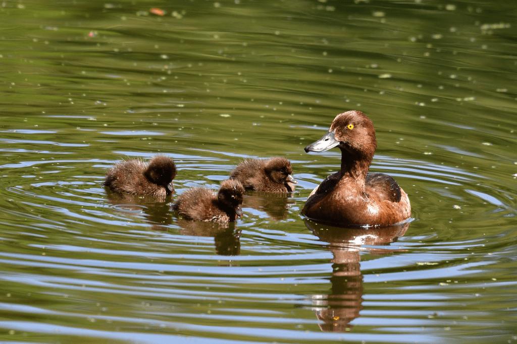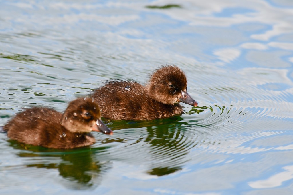 现在是七月,正是幼鸟出巢的时候。除了看到和妈妈在一起的小灰雁,还有池塘中和妈妈在一起的小凤头潜鸭,他们有模有样地扎着猛子,学习寻找食物。