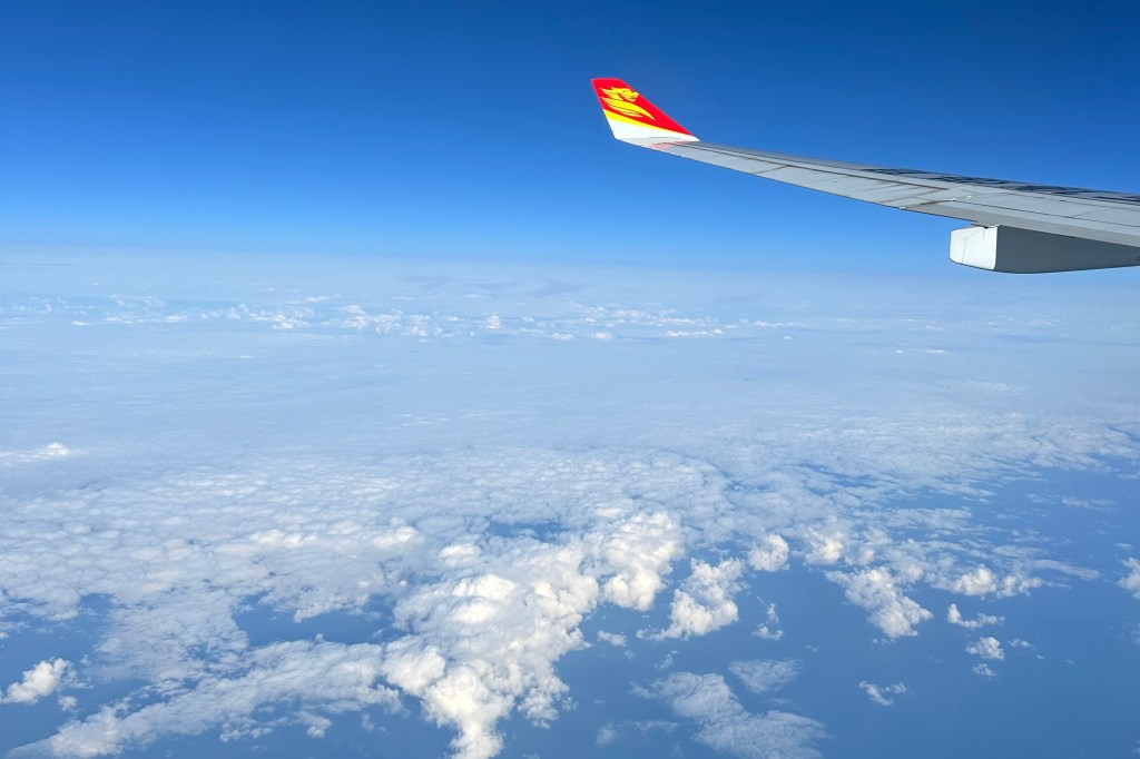 7月初,我们从青岛出发,去伦敦看望在那里工作的儿子。我们乘坐的是首都航空的空客A330,从青岛胶东机场直飞伦敦。飞机连续飞行12小时,北京时间下午15:00起飞,伦敦时间19:00到达希思罗机场。