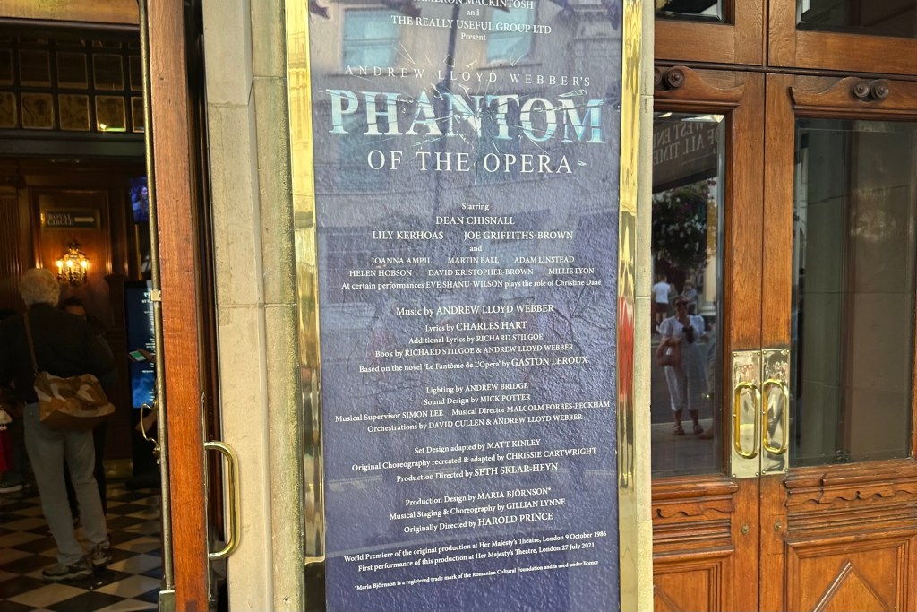 我们晚上要看的音乐剧是《歌剧魅影》(The Phantom of the Opera)。这是一部享誉全球的经典音乐剧,1986 年 10 月 9 日首演,莎拉・布莱曼(Sarah Brightman)饰演女主角克莉丝汀,首演即获得巨大成功。伦敦原版在国王陛下剧院连续演出 35年(1986-2020,因疫情中断后复演至 2025 年)。
